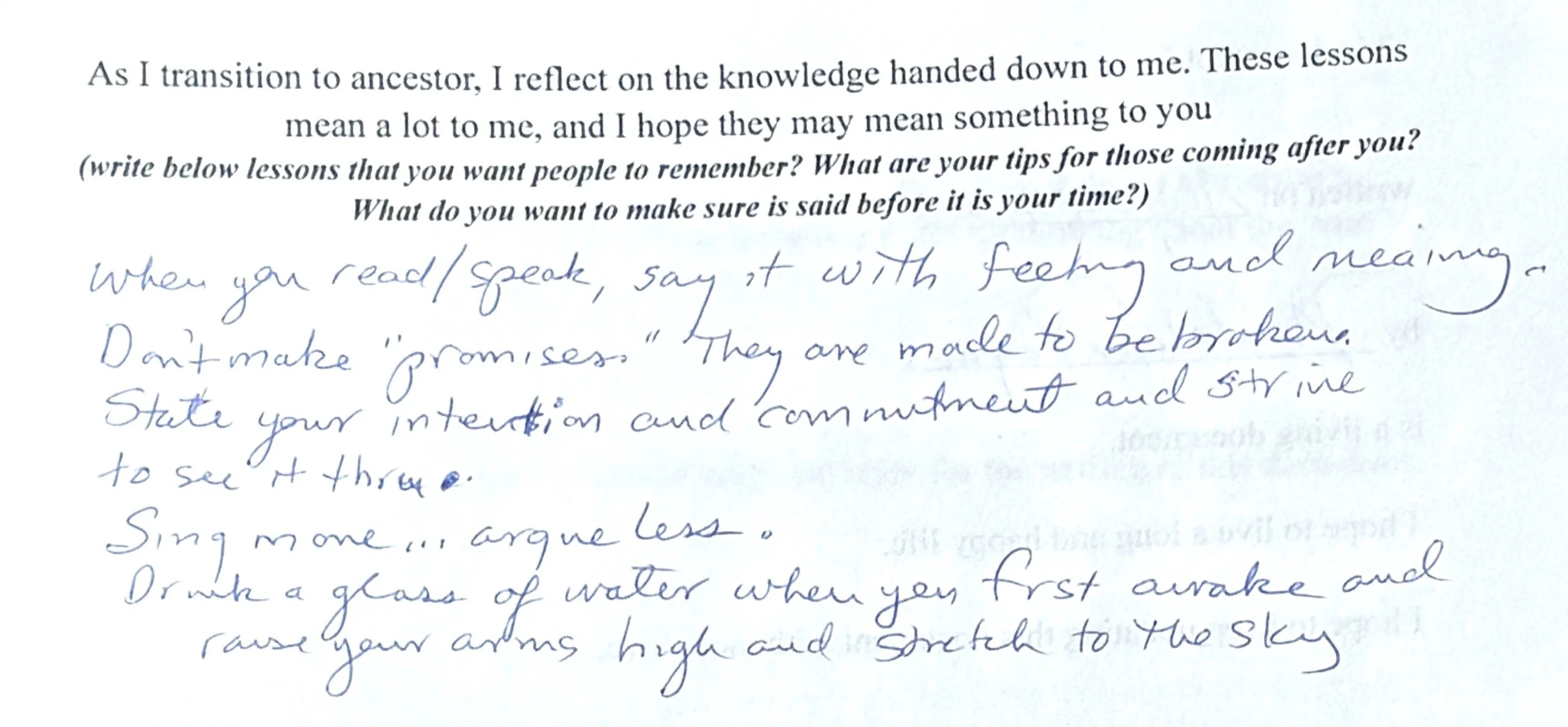 Each receives a fill-in-the-blank will template as a creative prompt to explore how they wish to be remembered, how they want their life celebrated, and what it means to become an ancestor.